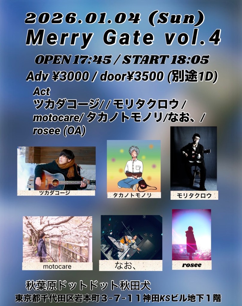 出演: ツカダコージ, タカノトモノリ, モリタクロウ, motocare, なお、, rosee (OA)